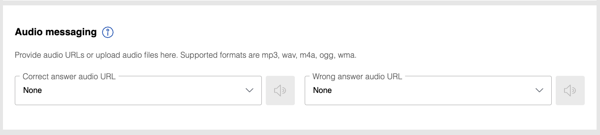 These settings can be used to add audio effects to your puzzles. They are available under the Audio messaging section.