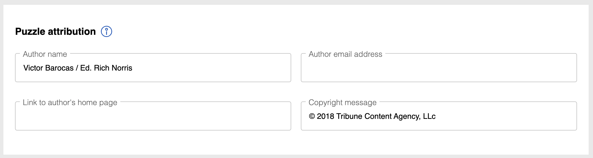 Puzzle attribution can be used to credit the authors of your game, and allow your players to connect with them. For each game, you can specify: