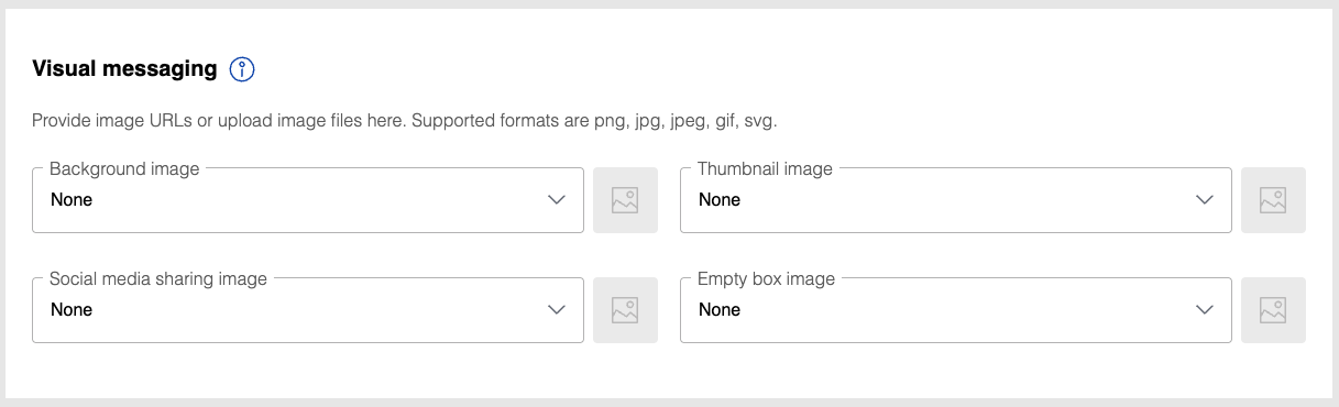 For each visual messaging field, you can either provide a custom image URL or choose from our preset options.