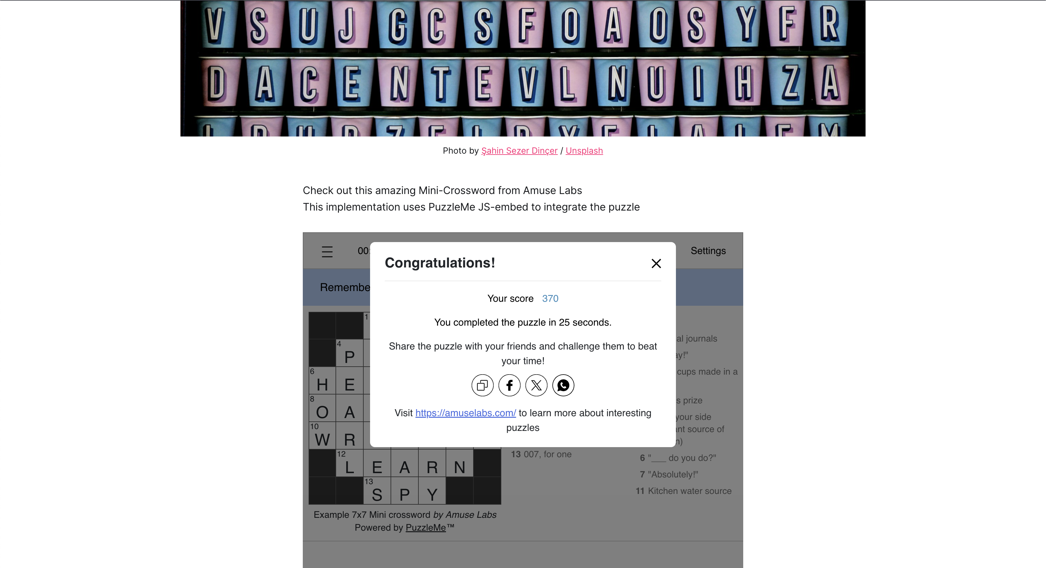 If you're using Ghost to build or publish posts, you can easily embed any puzzles directly onto your pages.