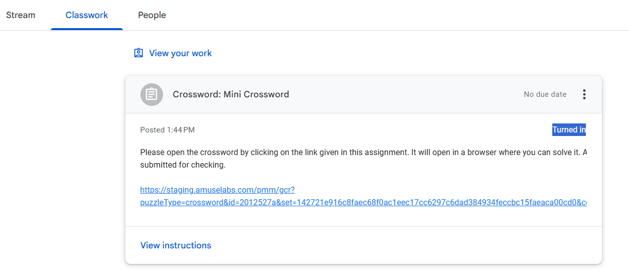 - Students see the puzzle in their Google Classroom dashboard, under the Classwork tab.