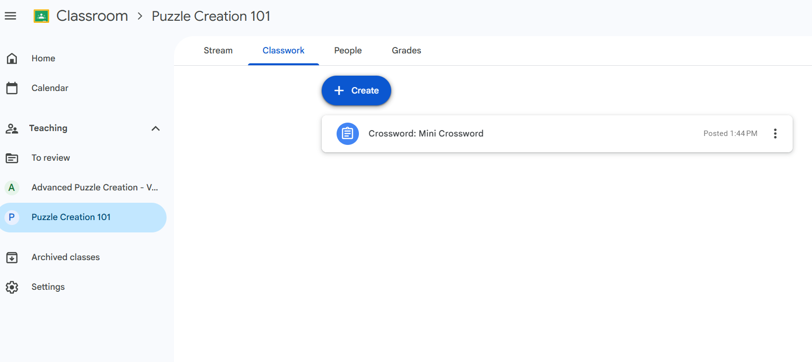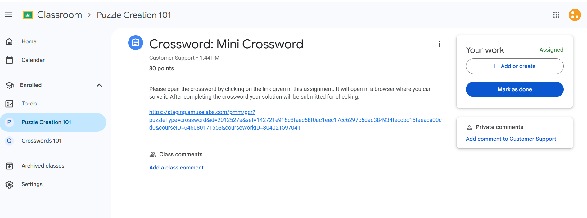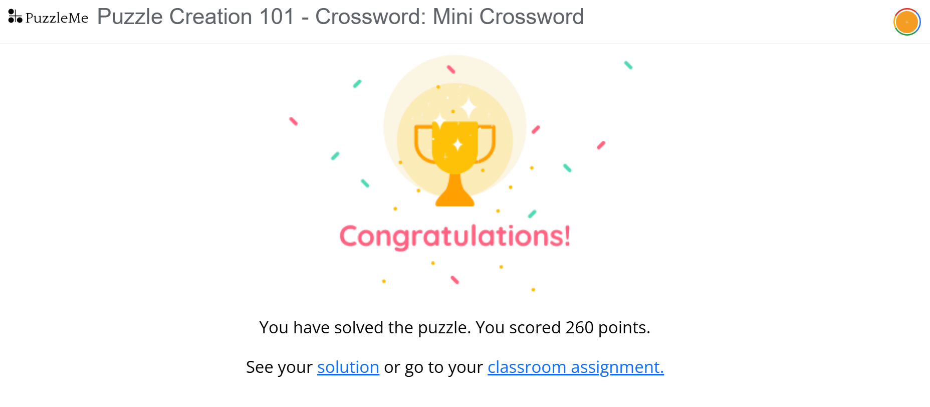 - You can publish a puzzle directly as an assignment in any of your Classroom courses, without leaving your PuzzleMe account.