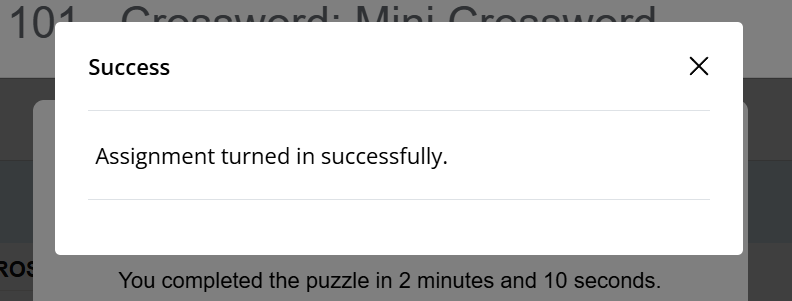 - Once they finish solving (for non-contest puzzles) or click Submit (for contest puzzles), the assignment is marked as submitted.